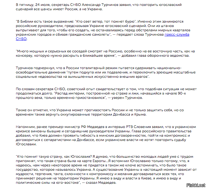 Так же он заявляет что, "украинизация" крыма была насильственной