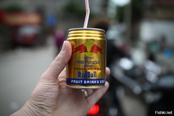 На настоящем тайском (а не вьетнамском) ред булле вместо FRUIT DRINKS написано KRATING DAENG