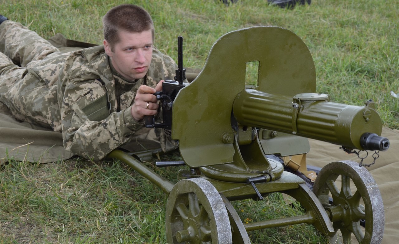 Отрицая ценность меча как оружия, мне указали на то, что лишь пулемёт оружие массового поражения. Отбросим тот факт, что лишь ядерное, биологическое, химическое и т.п. оружие формально является оружием массового поражения, а пулемёт лишь скорострельным оружием поддержки пехоты, но не будем цепляться к терминам. И вот мне подумалось: что бы эффективнее использовали два человека не имеющие начальной военной подготовки меч или пулемёт? Я настаиваю на тезисе, что более чем 7000 лет использования меча уже записано в генах, в то время как на танковом биатлоне(!) катарский экипаж не смог зарядить ленту в турельный пулемёт(!) Тем более даже в фехтовании на шпагах, в общем, не так много позиций и приёмов, а уж бой на мечах укладывается в два приёма: бей-коли. Как говорил Борис-бритва: «тяжесть – это надёжно, даже если не выстрелит, всегда можно дать по башке», а меч это, по сути, острая палка, все им могут дать по башке, ума много не надо. А уж какие раны наносит меч, можно посмотреть в Непобедимый воин / Deadliest Warrior — 1 сезон, 2 серия "Самурай против Викинга", выводы полный бред, но манекены и свиньи там полосуются мечами от души. На фото Максим с непривычным для многих станком 1995 года, именно такие были в Русско-японскую.
