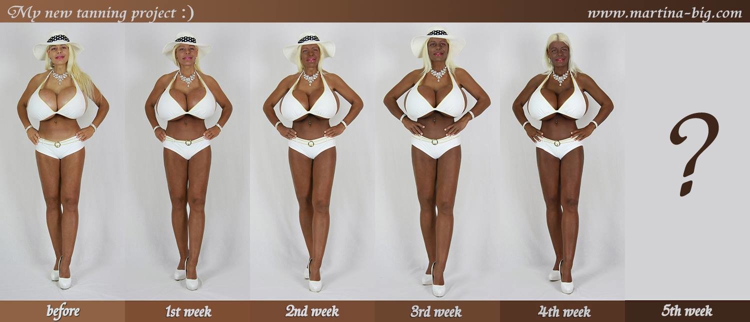 Гламурная модель из Германии Мартина Биг утверждает, что успешно трансформировала себя в чернокожую женщину. 28-летняя обладательница невероятно большого бюста воспользовалась инъекциями искусственного загара для того, чтобы окрасить кожу в коричневый цвет. Своим превращением эта дама похвасталась во время поездки в Лос-Анджелес. Мартина известна тем, что бюстгальтеры для нее готовят по специальному заказу для того, чтобы подчеркнуть зону декольте. Женщина позировала на фоне знаменитых голливудских букв, а свой снимок подписала так: “В прошлый раз я посетила это место блондинкой с белыми волосами и светлой кожей. А теперь я чернокожая женщина с типично африканской прической”