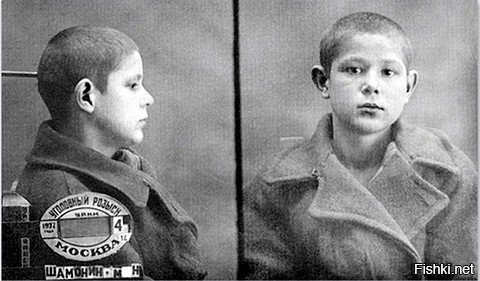 Миша Шамонин, беспризорник тринадцати лет. Он украл две буханки хлеба. Кто-то его на этом поймал и вызвал милицию. Приехал уголовный розыск, забрал Мишу. Буханки были с прилавка - а это уже хищение госсобственности, совсем другая статья. Казнить детей Сталин разрешил еще в 1935 году, узаконив применение высшей меры социальной защиты - расстрел с двенадцати лет. Следователь очень хотел расстрела и новой должности, чтобы было все убедительнее подправили дату рождения в документах так, чтобы мальчику было пятнадцать. На фотографии, сделанной тюремным фотографом, он в старом пальто с чужого плеча, пальто велико ему на пару размеров.