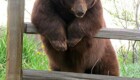 Изобретатель батута Джордж Ниссен, прыгает на своём детище с кенгуру.