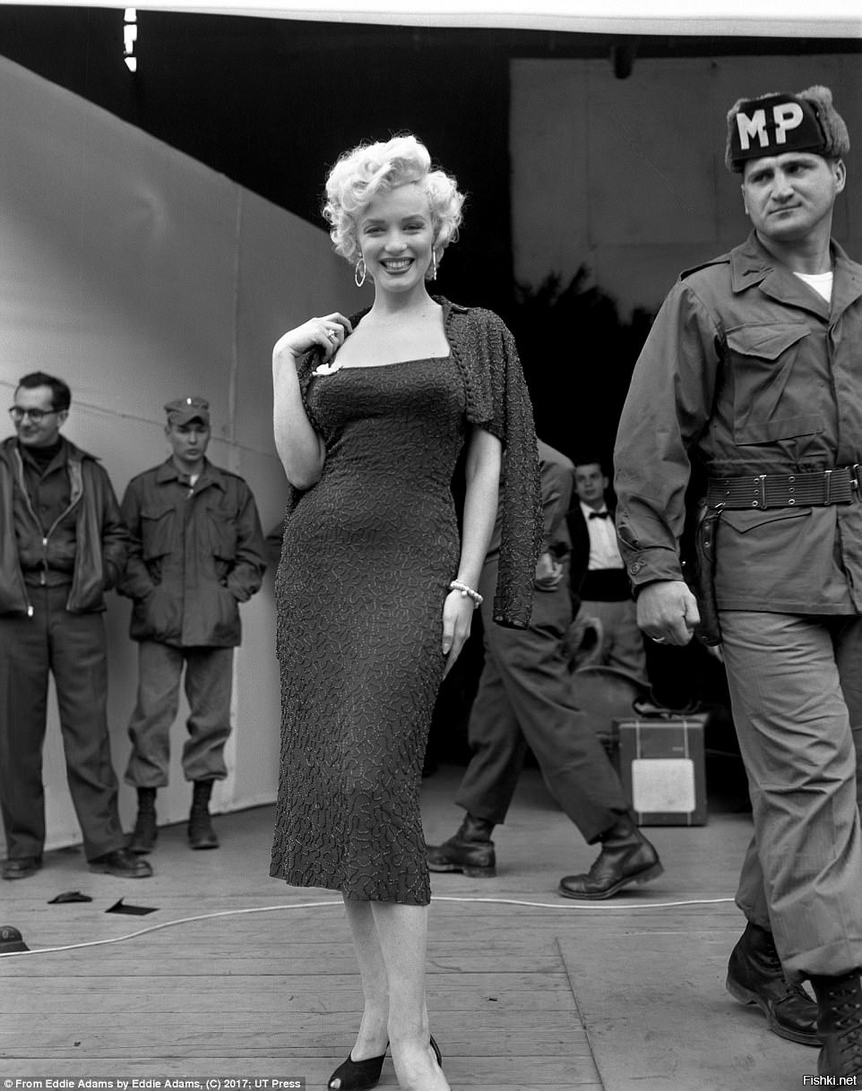 Мэрилин Монро поет для солдат в Корее, 1954 год.