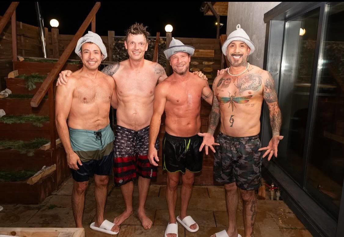 Backstreet Boys в бане (четверо из пяти участников бойз-бенда позируют в труселях, парятся в сауне и окунаются в бассейн). Причём в Астане.