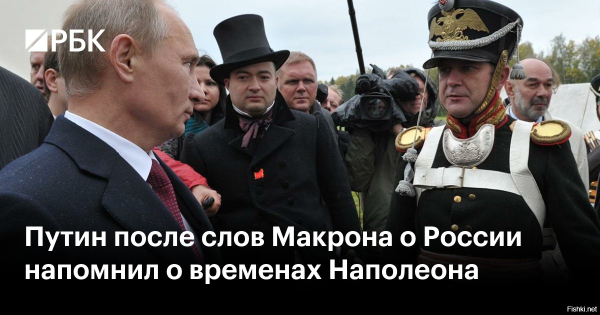 «Ему [Макрону] очень хочется перенести, как я уже сказал в своем выступлении, напряжение на внешний контур, возбудить какие-то другие силы, другие страны, в частности Россию, спровоцировать нас на какие-то активные действия и сказать французам: «Сплотитесь вокруг меня, я вас поведу к победе», как Наполеон», сказал Путин.