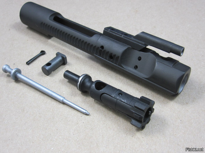 StG 44 запирался перекосом затвора внутри ствольной коробки — конструкция сложная и не самая надёжная в грязи. АК же получил поворотный затвор, который работает как танковая заслонка: просто, надёжно и не клинит.