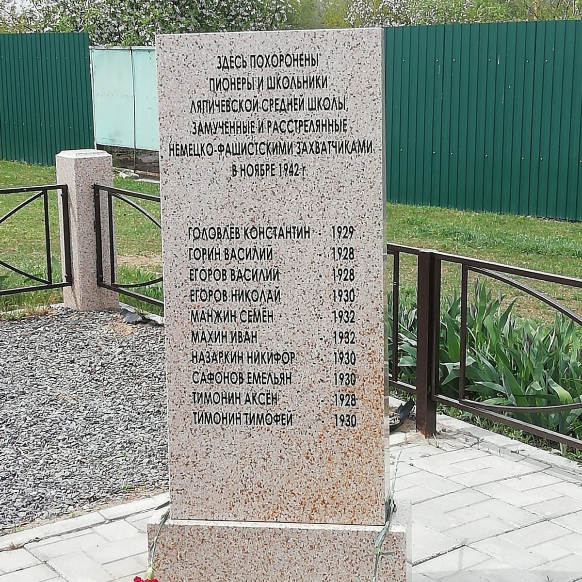 Подвиг пионерского отряда Ляпичевской семилетней школы, действовавшего нелегально в придонских хуторах, описан в книге Виктора Дроботова «Босоногий гарнизон». Все мальчишки учились в начальной школе. В пионерском «гарнизоне» было 17 ребят. Старшему из них Аксёну Тимонину, председателю совета отряда, было 14 лет, младшему, Сёмке Манжину, минуло всего 9 лет. Галстуки пионеры хранили в потайном месте, о котором знал только командир «гарнизона» Аксён. Юный командир любил военное дело. У него были деревянные ружья. Мальчики в тайне от взрослых занимались военным делом в займище. Там нашли боеприпасы, таскали их в село и прятали за речкой, чтобы оказать помощь красноармейцам. Обучались стрельбе, мишенью был потрет Гитлера. Фашистам, когда они пришли в село, вредили как могли. Четверо из них ( Аксён Тимоша Тимонины, Серёжа Соколов и Федя Силкин ) знали о раненом офицере, спрятанном в займище. Не раз пробирались к амбарам, где фашисты хранили посылки. Добытые продукты переправляли офицеру. Чтобы выкрасть оружие, Максим Церковников забрался в автомашину, выбрасывая из неё автоматы. Немцы заметили его, но Максиму удалось скрыться. Мальчики всё-же были раскрыты фашистами. Ваня Махин, на квартире у родителей которого стоял немецкий офицер, решил стащить пачку сигарет, чтобы через Аксёна передать раненому советскому командиру. Но случилось непоправимое. Ваню схватили, стали бить, не выдержав истязаний, он назвал несколько имён. В ночь на 7 ноября 1942 года арестованных мальчишек побросали в машину, в которой возили мясо. Уже стояли морозы. Дети были избиты, разуты, раздеты, все в крови, их швыряли в кузов, как поленья. Их родителей немцы погнали рыть яму. «Мы плакали, - вспоминал Филипп Дмитриевич, отец Аксёна и Тимона Тимониных, - сердца наши разрывались от горя и невозможности помочь нашим сынкам». А тем временем мальчиков разделили на группы по пять человек. И поочерёдно группами отводили за стену, где их расстреливали. Один из очевидцев, житель хутора М.Д. Попов, посвятил памяти замученных пионеров стихи «Аверинская драма». Слушайте, люди, печальный рассказ. Были фашисты когда-то у нас. Грабили жителей, мучили, били. В наших домах кровопийцы те жили. Там, где в колхозе силосная яма, днём разыгралась кровавая драма. Драма кровавая, жуткая драма: стала могилой силосная яма. Десять мальчишек бандиты убили. В яму, как кошек, бедняжек зарыли. Десять мальчишек: Ивана, Семёна, Васеньку, Колю, Емелю, Аксёна. Руки пред казнью бандиты связали, пули фашистов сердца пронизали. Горько рыдали их мамы. Нет! Не забыть нам аверинской драмы.