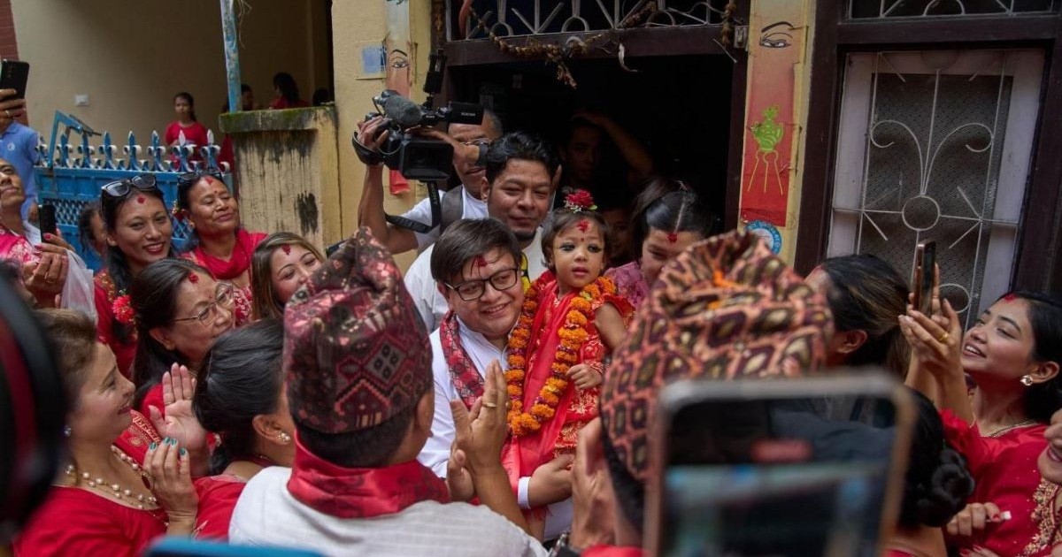 Двухлетняя жительница Непала стала новой Кумари — воплощением индуистской богини Таледжу. Девочка прошла испытание на храбрость: ей показали несколько принесённых в жертву буйволов и людей в масках, танцующих в крови. Малышка не испугалась.