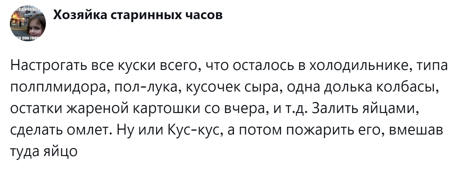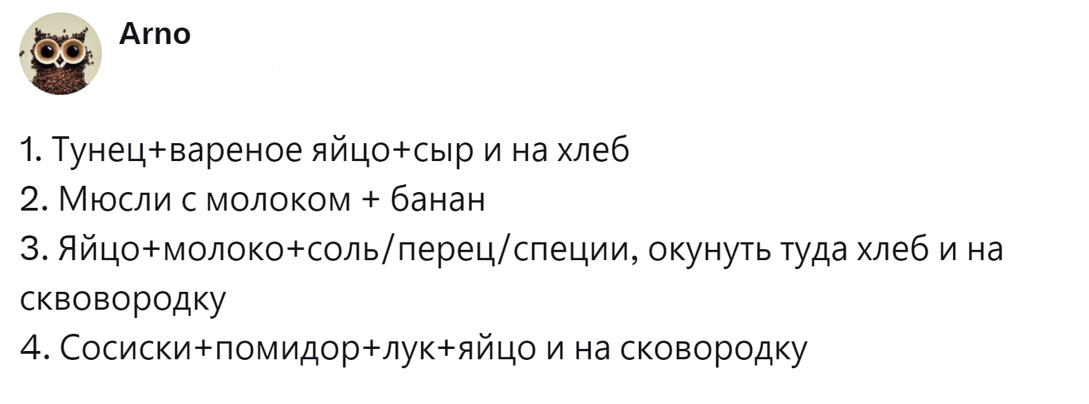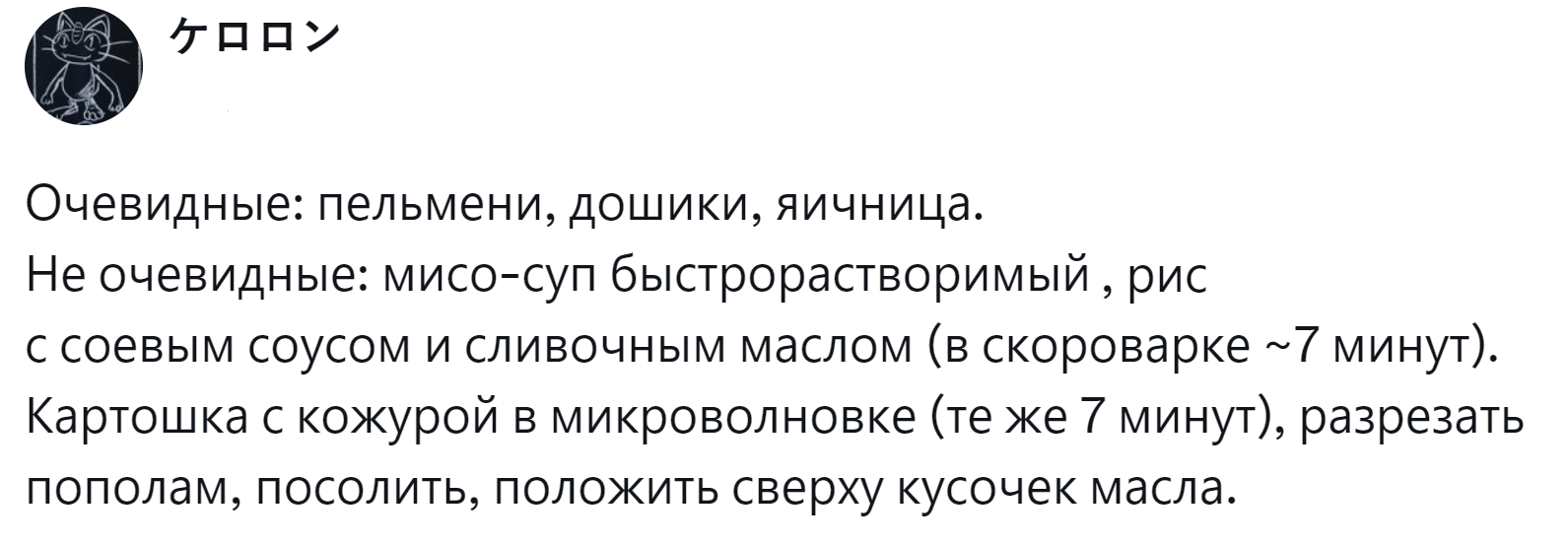 Чтобы соорудить что-то подобное, обычно уходит масса времени. Но практически у каждого есть в запасе пара-тройка рецептов секретных блюд-десяти- или даже пятиминуток, которые позволяют соорудить что-то более или менее внятное, когда времени кашеварить совершенно нет. Пользователи рассекретили свои тайные рецепты. Некоторые оказались неожиданными, но вполне себе имеющими право на существование.