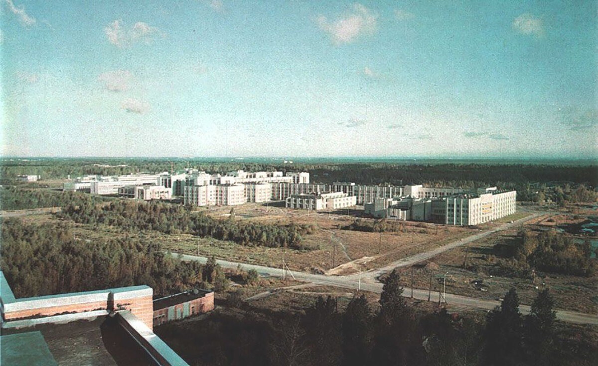 В Петергофе построен студгородок (или как сейчас модно говорить - кампус) СПБГУ. На снимке - сам университет, снятый с крыши одного из общежитий.