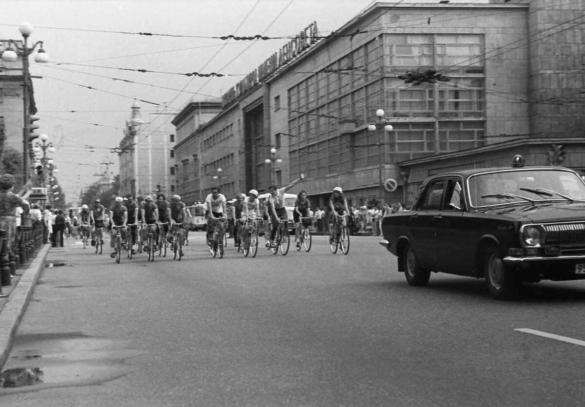 Велопробег на Кировском (ныне Каменноостровский) проспекте.