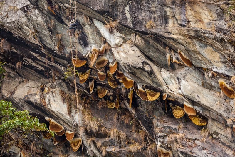 И в последние десятилетия эта профессия потихоньку загибается. Отчасти — из-за невыносимых условий труда, но это не главная причина. Дело в том, что численность гималайских пчёл постепенно сокращается из-за вырубки лесов, изменения климата и вездесущих пестицидов. А от этого в свою очередь страдают урожаи многих диких растений. Может оно и к лучшему. Люди будут меньше травиться, а оставленные в покое пчёлы спокойно восстановят свою численность. И, напоследок, ещё немного красивых фото:
