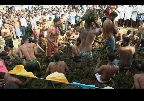 Местные жители верят, что одно из их божеств, Беерешвара Свами, родилось в коровьем навозе. За день до самой битвы устроители обходят все дома, где есть собственная корова, чтобы собрать свежий «материал». На запряженных буйволами повозках весь собранный навоз отвозят в храм, кто проводится обряд благословения. Когда все обряды завершены, кучи навоза выбрасывают на большое поле рядом с поселением. В день великой битвы смельчаки должны явиться на поле, голыми по пояс.