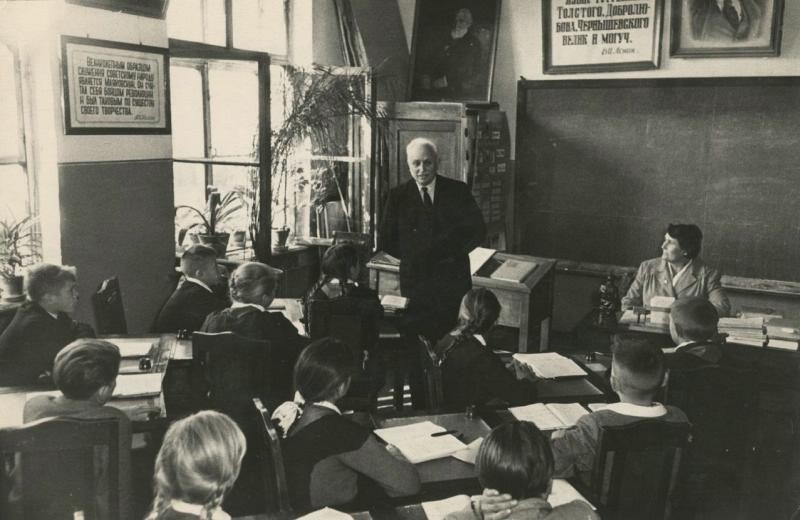 Урок литературы в яснополянской школе им. Л. Н. Толстого. 1930-е годы. Сергей Васин.