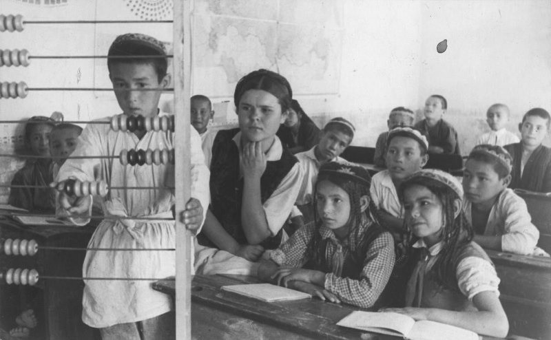 В новой школе колхоза имени товарища Сталина Янги-Курганского района. «Трудная задача». 1939-1940 годы. Макс Пенсон.