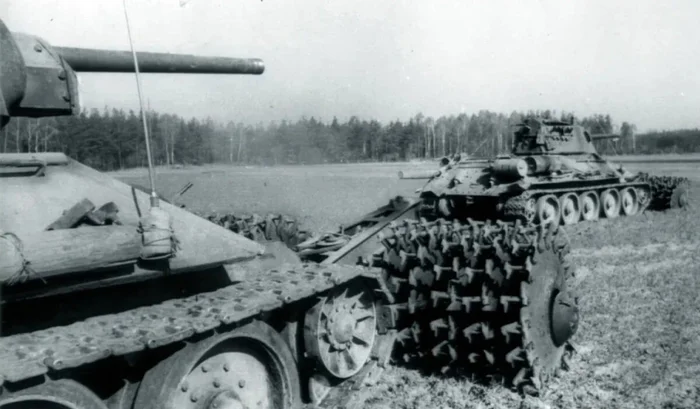 Здравствуйте Уважаемые читатели! К 1943 году у Красной армии в отличии от врага появился трал ПТ-3, который позволял проделывать проходы по минным полям и снижать потери в бронетехнике при прорыве вражеской обороны. Так, осенью 1943 года недавно сформированный 166-й отдельный инженерно-танковый полк отправляется на Букринский плацдарм в излучине Днепра, южнее Киева, к месту сосредоточения сами тралы доставляли на лендлизовских трехосевых грузовиках "Студебеккер", которых в полку было 18, тралов тоже было 18, а вот танков Т-34 22 единицы. Так же было ещё 56 колёсных автомашин. Но стоит отметить, что не все танки были оснащены связью, как говорится, не без ложки дегтя. И вот, 12 октября 1943 года танкисты получают приказ на прорыв, Красной армии в этих боях предстояло занять всю излучину. Первая рота атакует в направлении высоты 216.3, проделав три прохода, ликвидировав 6 немецких мин по пути, танки с тралами, ведя огонь, ликвидировали 40 фашистов, 4 орудия, 7 автомашин и разметали 6 пулеметных гнезд. Сами потеряли два человека общими и один трал был поврежден.