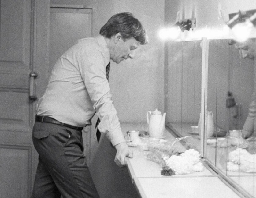 Валентин Гафт в гримёрной готовится к выходу на сцену. 1963 год.