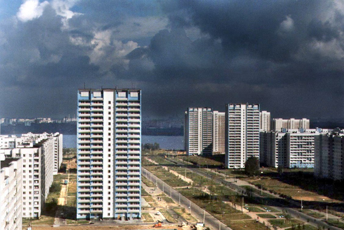 Тучи сгущаются над Москвой. Вид из окна дома по улице Кулакова на Строгинский бульвар.