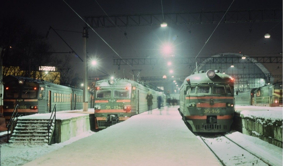 Электрички готовятся отправиться в депо с Киевского вокзала.