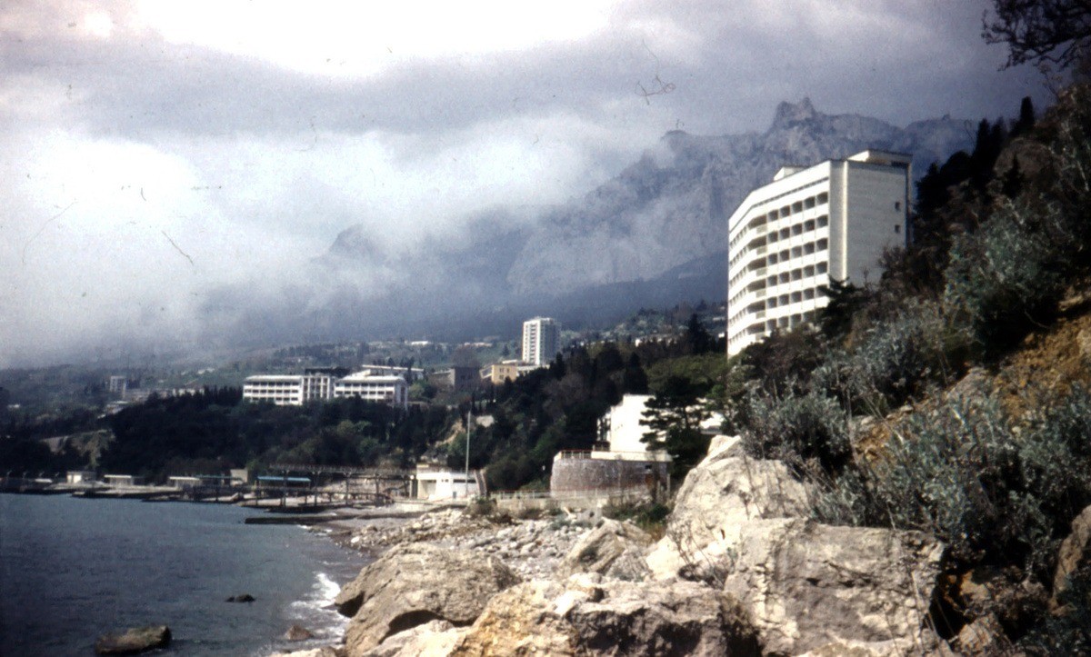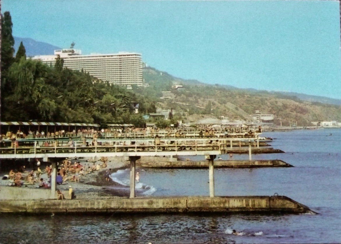 Вид на ялтинские пляжи и гостиницу "Ялта", которую сейчас мы знаем как "Ялта Интурист".
