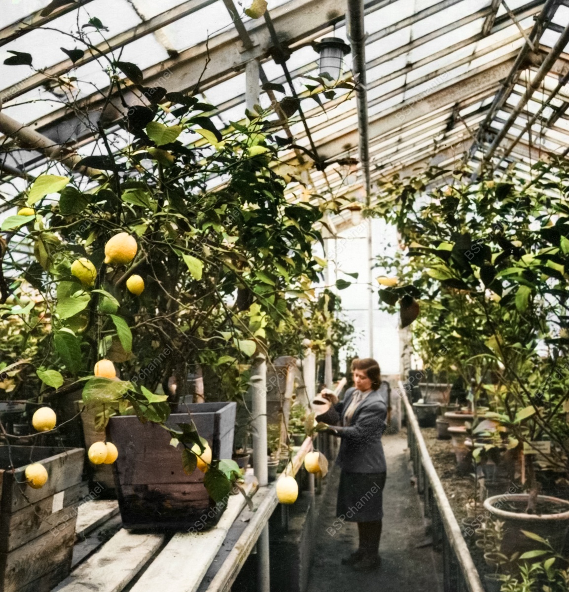 Цитрусовые в одной из оранжерей главного Ботанического сада Академии наук СССР. Москва, февраль 1955 года.