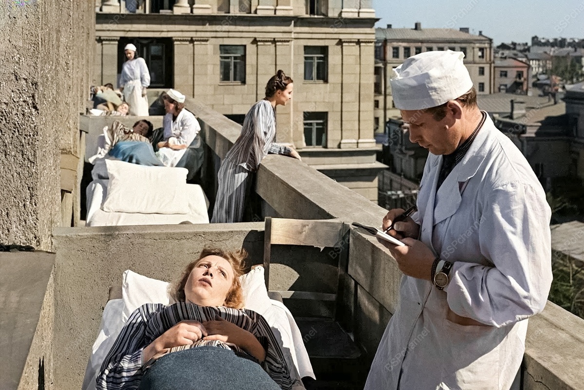 Воздушные ванны. Центральный институт курортологии. Москва, 1951 год.