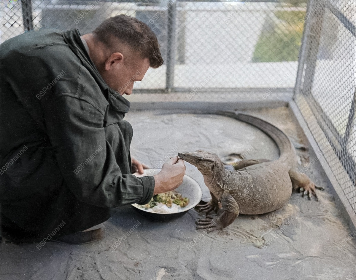 Кормление варана в Московском зоопарке. Москва, 1958 год.