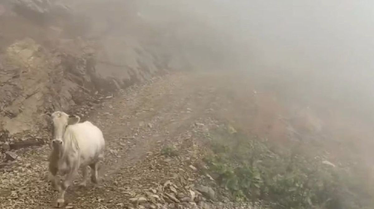 Корова появилась из тумана и сперва не вызывала опасений. Вскоре она опустила голову с рогами и целенаправленно устремилось в сторону людей.