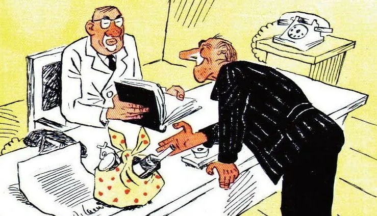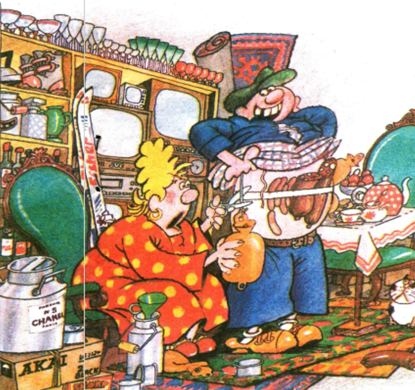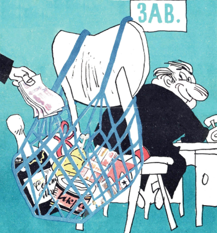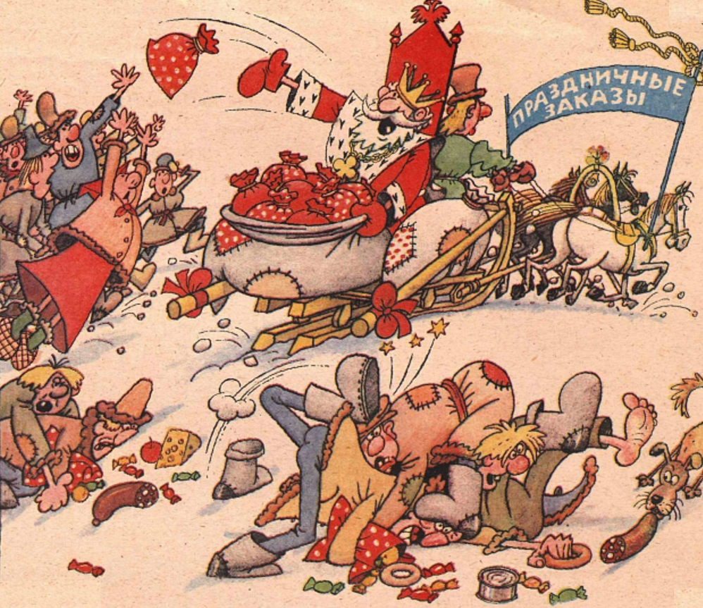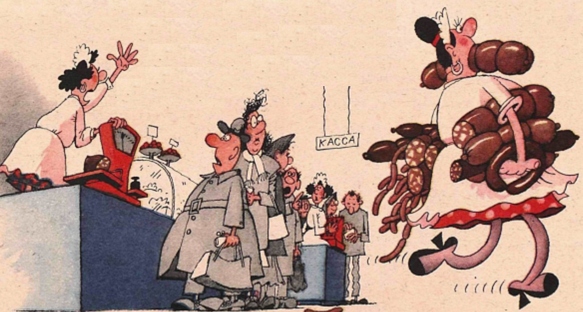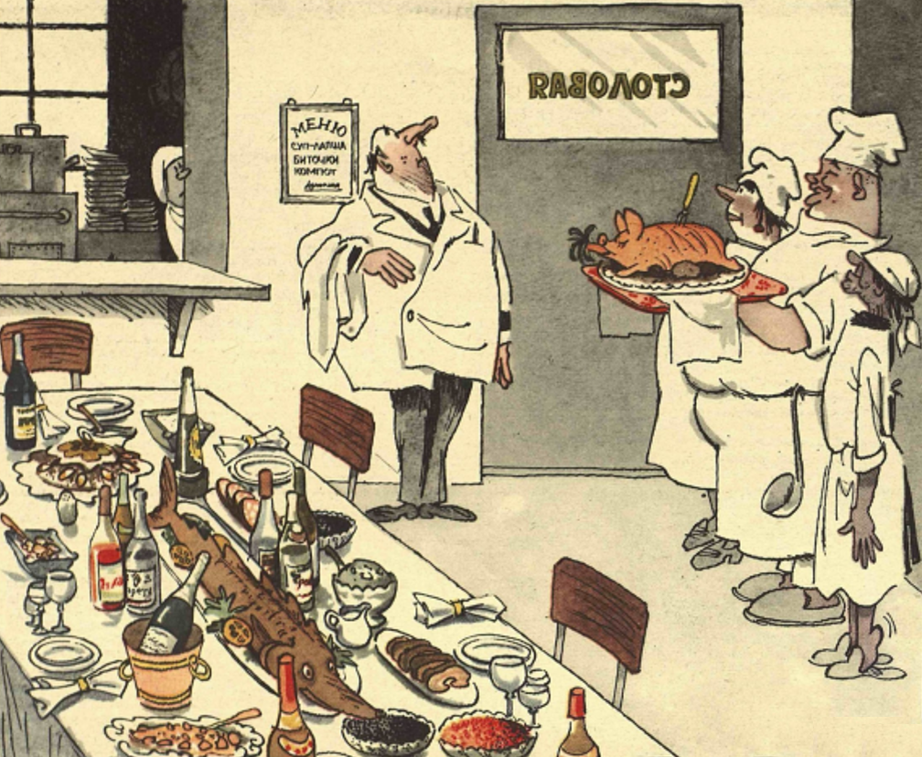 Не оставлял без внимания деликатесную жизнь в СССР и всеми любимый журнал "Крокодил". На его страницах часто публиковались различные юмористические фельетоны и карикатуры о дефиците продуктов питания, взятках деликатесами и шикарных праздничных столах у отдельных советских граждан. Представляю на выш суд несколько сюжетов из этого легендарного издания.
