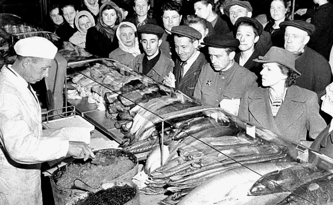 Красная рыба (семга, форель, лосось): даже несмотря на наличие собственных рыбных ресурсов, эта рыба редко попадала на стол рядовых советских граждан и продавалась преимущественно в крупных городах и специализированных магазинах.