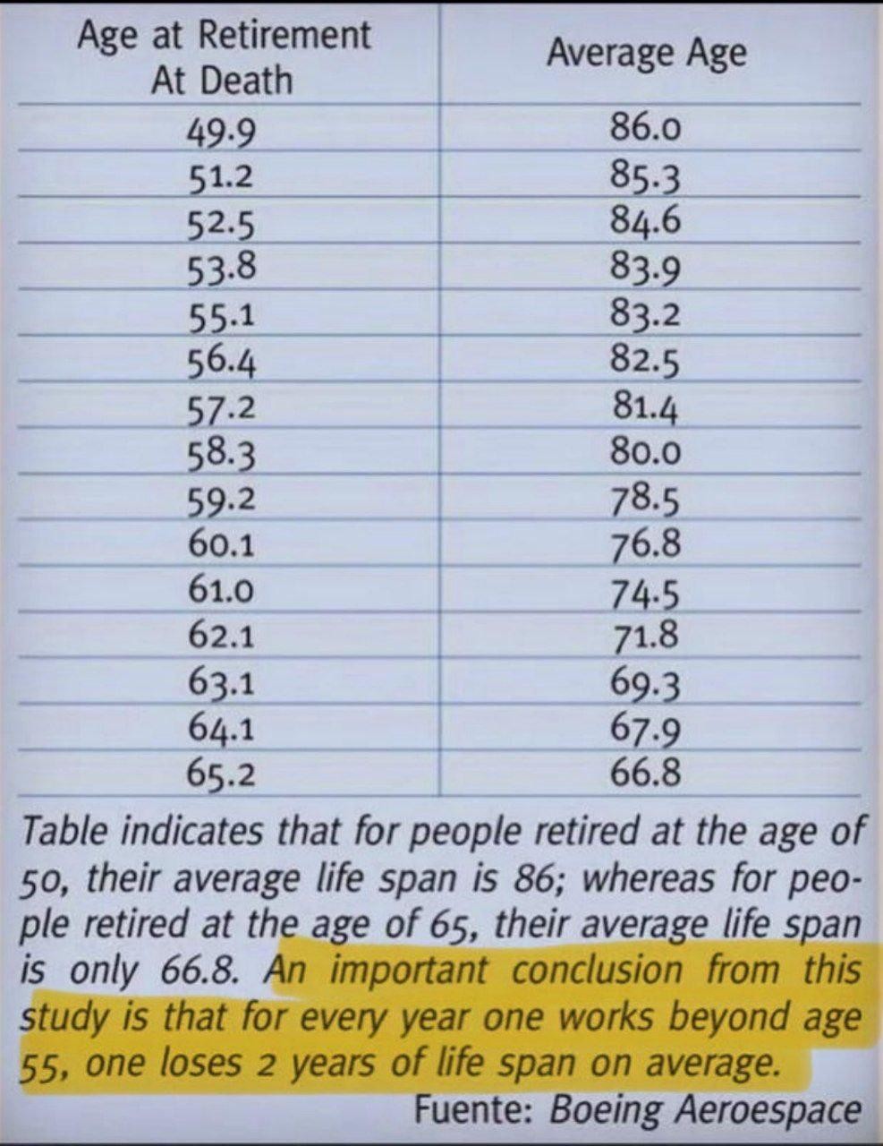 Ранний выход на пенсию может влиять на продолжительность жизни, как показало исследование. По данным учёных, те, кто завершил трудовую деятельность в 55 лет, в среднем доживали до 83 лет. Люди, продолжавшие работать до 65 лет, имели средний возраст смерти на отметке 66 лет.