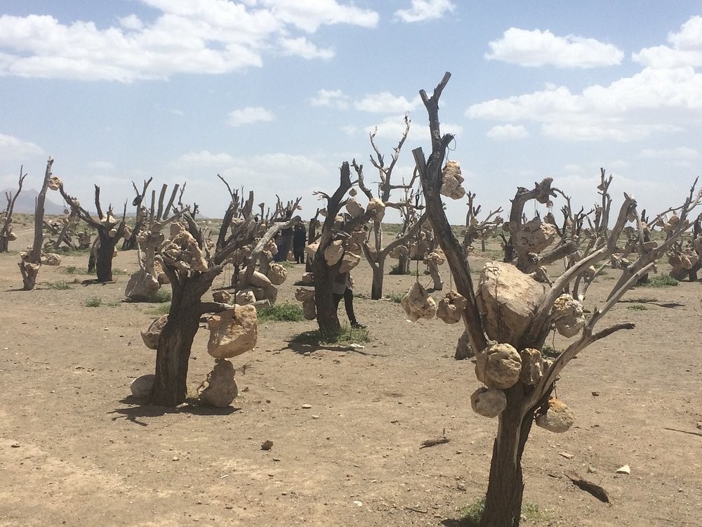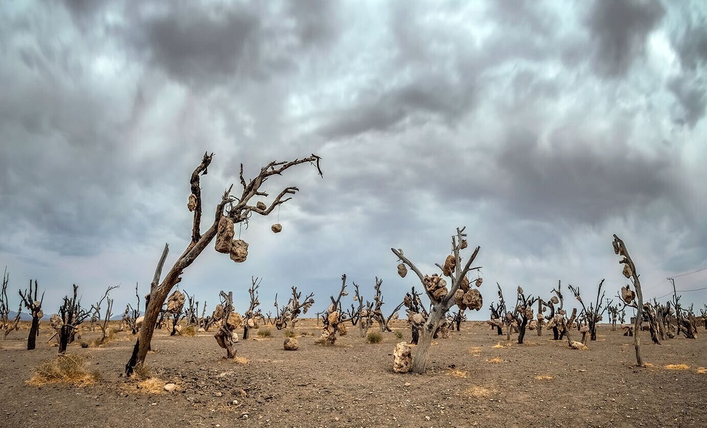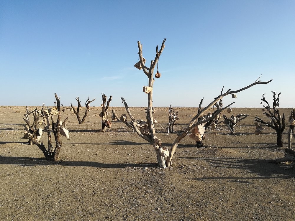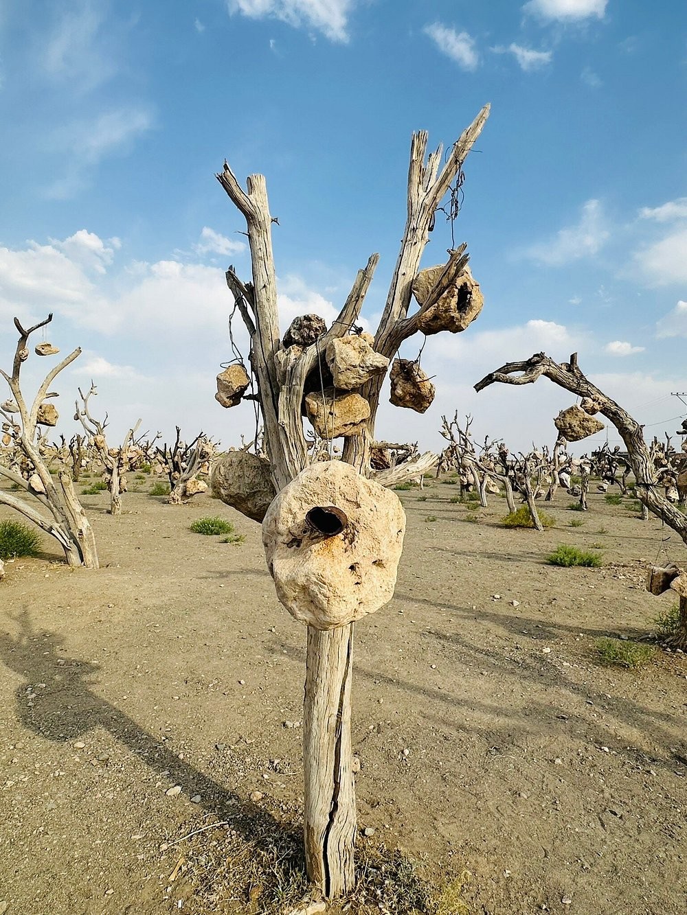 Посреди бескрайней пустыни находится этот невероятный сад каменных деревьев. Сотни высоких засохших деревьев простираются далеко по пескам, и с ветвей каждого свисают камни, большие и малые, некоторые весом более девяти килограммов. Это рукотворный рай для искателей странного, и зрелище это поистине завораживающее.