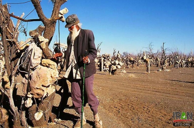 История сада не менее удивительна. Его создателем был глухонемой землевладелец по имени Дарвиш Хан Эсфандиярпур. Начиная с 1961 года, он развешивал каждый из этих камней на толстой проволоке и больших верёвках на усыхающих ветвях. Это был безмолвный протест против планов аграрной реформы, реализуемых режимом Мохаммада Реза-шаха Пехлеви, которые лишили его части земли, включая настоящий плодоносящий сад. С годами сад наполнялся новым смыслом, и с каждым значимым событием в жизни мужчины добавлялось и новое дерево.