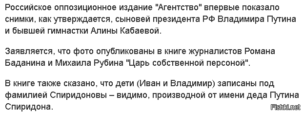 Хороший Путин или плохой - это каждый для себя решает сам. Но все знают, что Путин не любит распространяться о своей личной жизни. А вот эти скоты именно в День Рожденья выложили похабную и бездоказательную гадость.