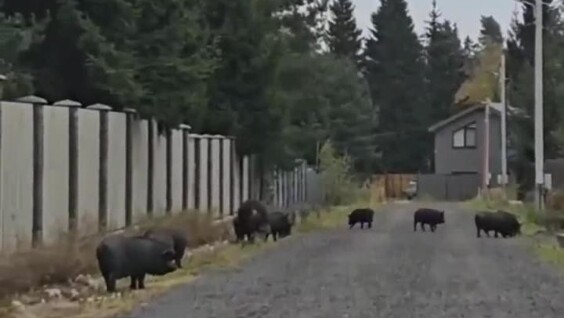 Жители поселка Стеклянный в Ленинградской области на днях наблюдали стадо кабанов, неспешно прогуливающихся по улицам. Животные также были замечены на территории одного из частных домов в Сестрорецке.