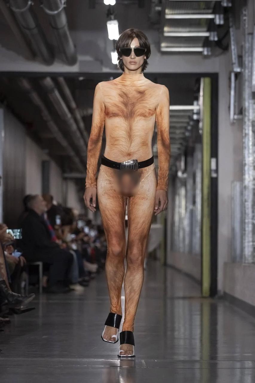 Современную моду в принципе очень сложно понять, а современную высокую моду так тем более. Модельер Дюран Лантинк показал дебютную коллекцию для Jean Paul Gaultier. Часть одежды была выполнена в виде голых мужских тел, густо покрытых волосами.