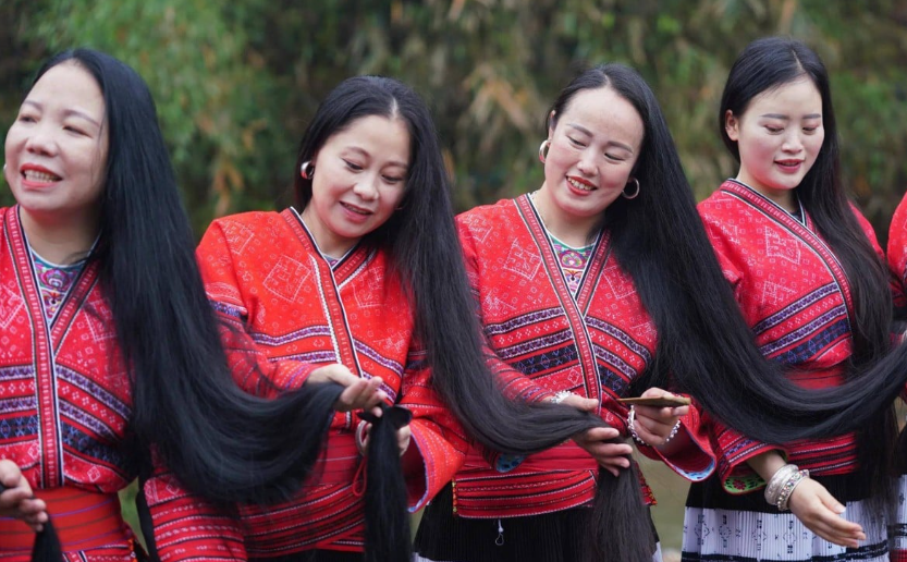 В Китае есть «небольшой» (по меркам Китая, конечно же!) народец, или как там говорят: этническая группа, в которой у всех женщин невероятно длинные волосы. Потому что разрешено им их стричь лишь дважды за всю жизнь.