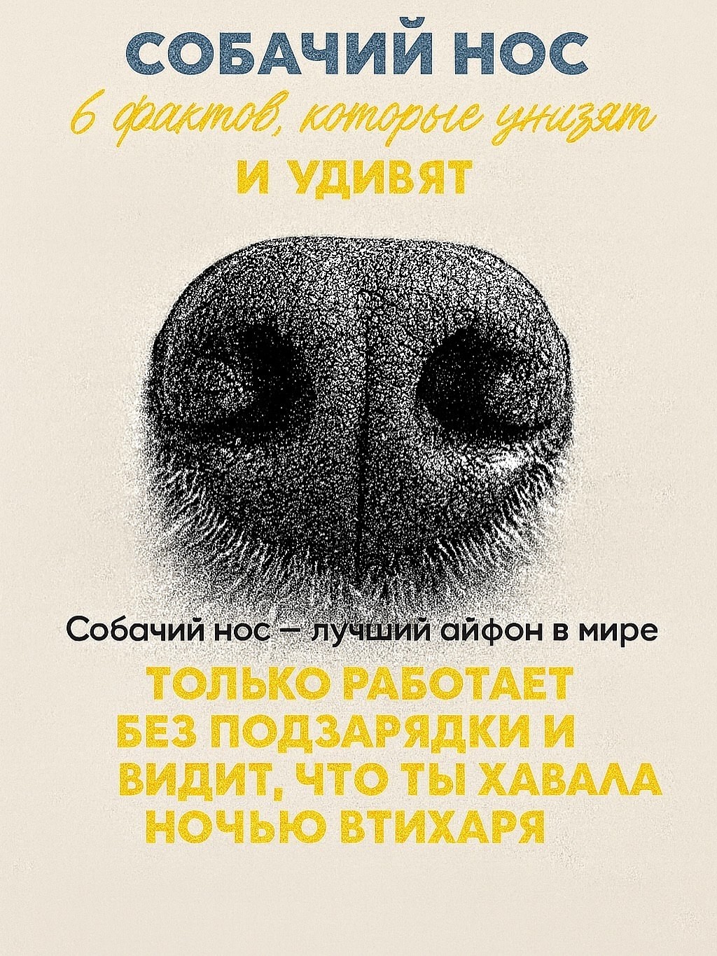 Собачий нос — это айфон без подзарядки, Google и бабка у подъезда в одном лице. Ты нюхаешь «вроде пахнет». Собака нюхает и выдаёт отчёт на 10 страниц: кто, где, с кем и что ел ночью втихаря.