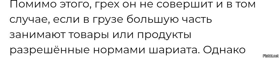 Напомним, что вчера ДУМ впервые на основе Корана разделил все перевозимые товары на харамные и халяльные. На сайте ДУМ опубликовали фетву, в которой подробно разъясняется работа в логистике и доставке с точки зрения шариата. Так, мусульманам запрещается перевозить харамные товары и продукты (свинина и мясо животных, забитых не по нормам шариата, а также алкоголь, азартные игры и предметы языческого культа). При этом доставка не будет считаться грехом, если курьер не знал о содержимом доставки. Помимо этого, грех он не совершит и в том случае, если в грузе большую часть занимают товары или продукты разрешённые нормами шариата. Однако после доставки такого товара мусульманину следует отдать часть дохода на милостыню для «очищения заработка», объяснили в ДУМ.
