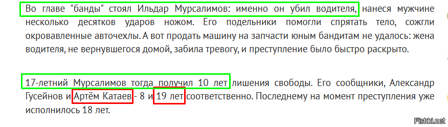 17-летний Мурсалимов тогда получил 10 лет лишения свободы. Его сообщники, Александр Гусейнов и Артём Катаев - 8 и 19 лет соответственно. Последнему на момент преступления уже исполнилось 18 лет.