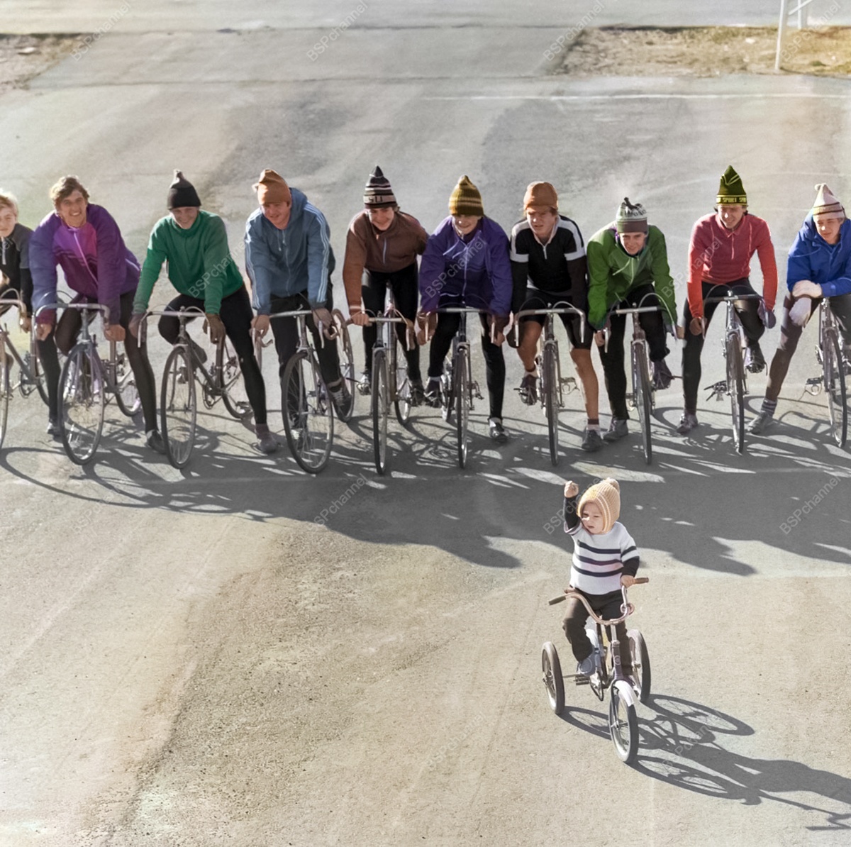Студенты города Джамбул (ныне Тараз, Казахстан) на старте перед велогонкой, 1986 год.