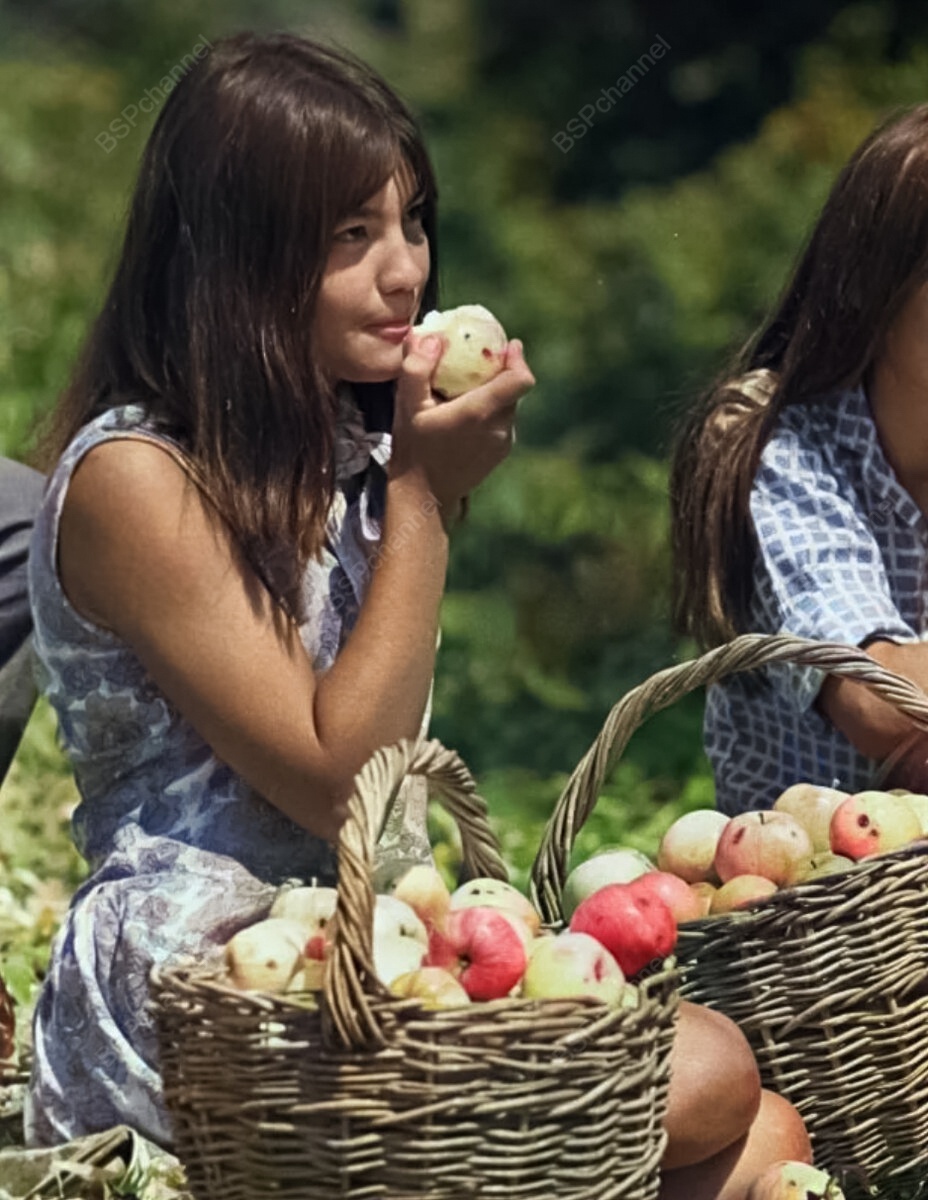 Сбор яблок в колхозном саду, 1974 год.
