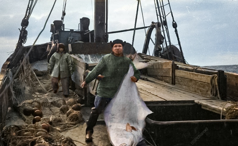 Моряки на борту судна с уловом. 1963 год.