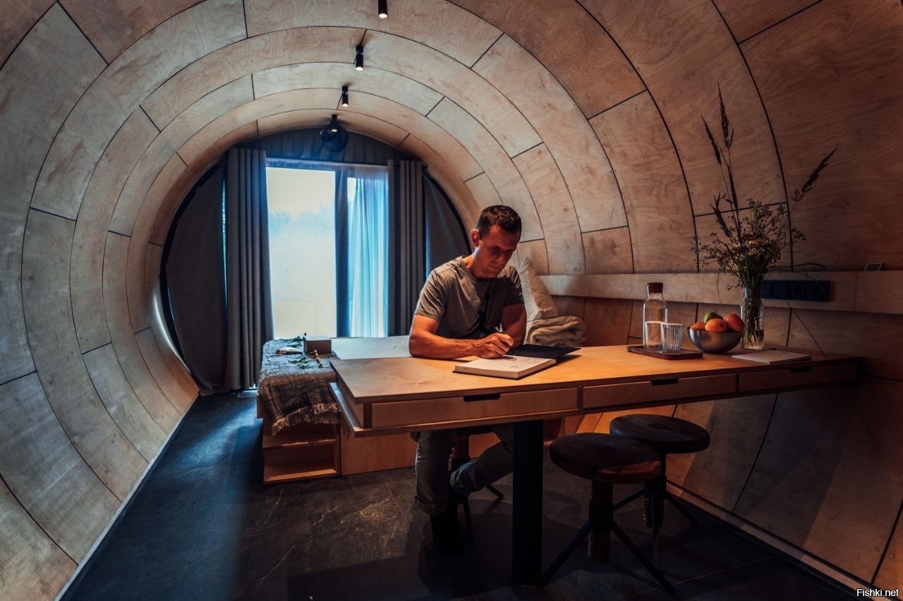 Форма павильона перекликается со многими вещами – кому-то напоминает трубу, кому-то фюзеляж самолета или корпус корабля. И это очень здорово, потому что отражает суть проекта – разные технологии из разных сфер соединяются и воплощают идею в реальность. Именной такой должна быть современная архитектура: качественная реализация идей, интересные материалы и технологии, неординарные решения в плане формы и дизайна. «Русское идеальное» грандиозная работа большой команды энтузиастов, которой я очень благодарен. А узнать больше о создании жилого павильона в Никола-Ленивце можно в нашем фильме.