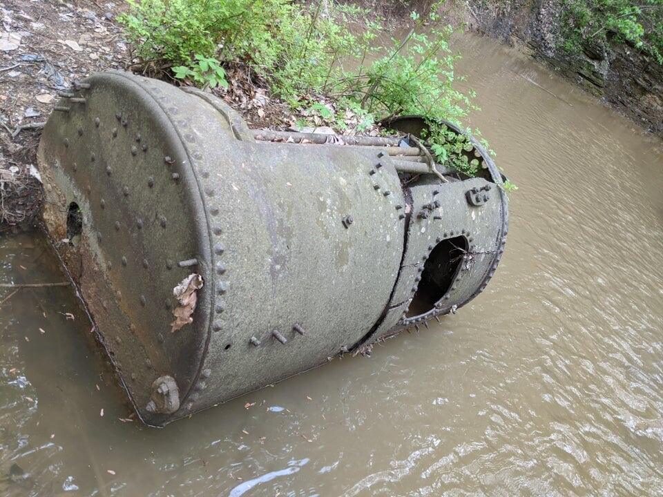 Это паровой котел. Возможно от двигателя поезда, или, более вероятно, из здания, используемого для отопления или производства энергии для добычи полезных ископаемых.