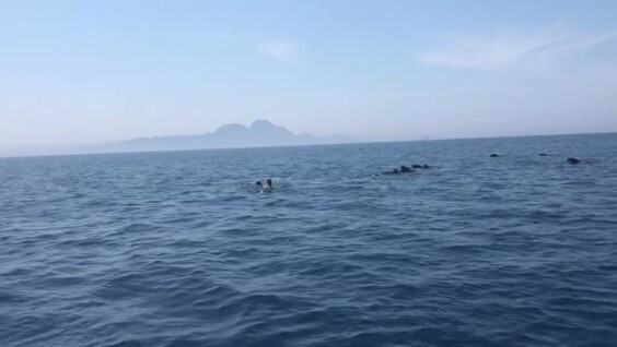 На кадрах, снятых 4 октября в Гибралтарском проливе, трое мужчин прыгают с прогулочного катера и плывут к гриндам. После публикации видео пользователи соцсетей осудили пловцов за их безрассудные действия.