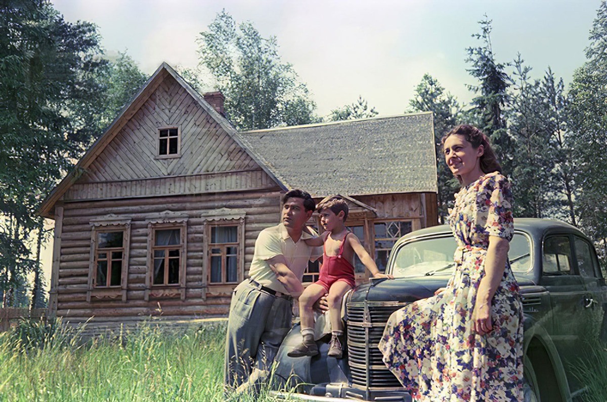 Знаменитый советский лётчик Алексей Петрович Маресьев с семьёй на даче в поселке Некрасовский.