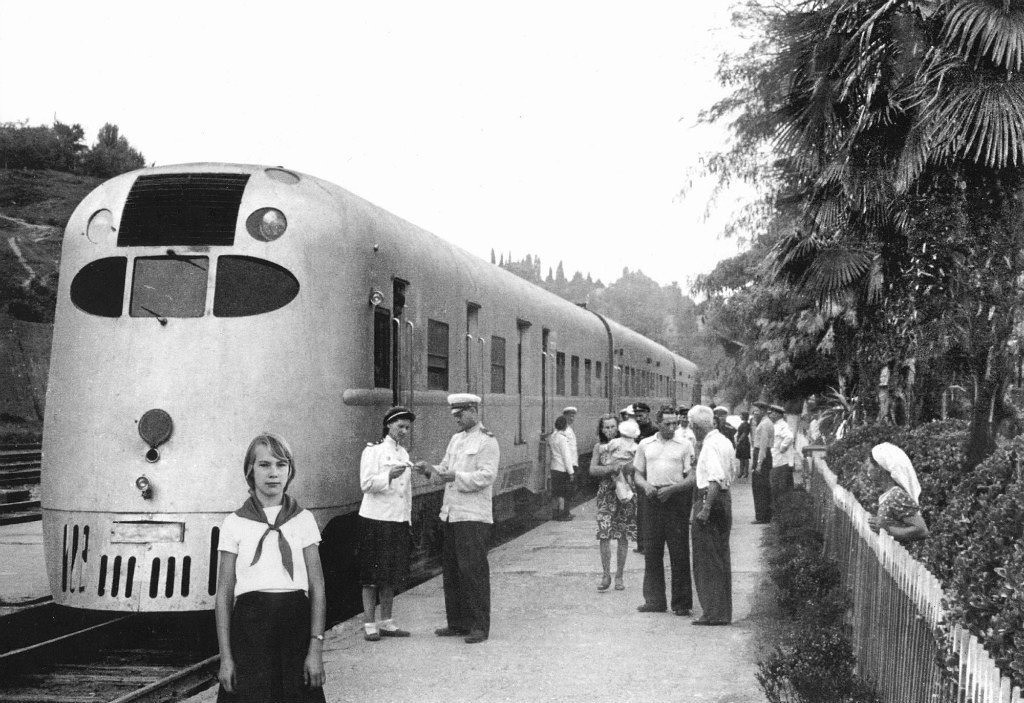 На участке Тбилиси-Сочи пассажирское движение в те годы обслуживали комфортабельные дизель-поезда Ганц-Маваг.