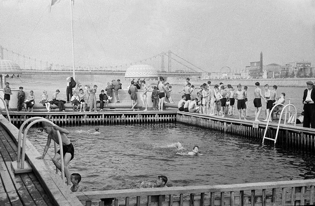 А в Москве летом тогда купались вот так. Купальня на Москве-реке.