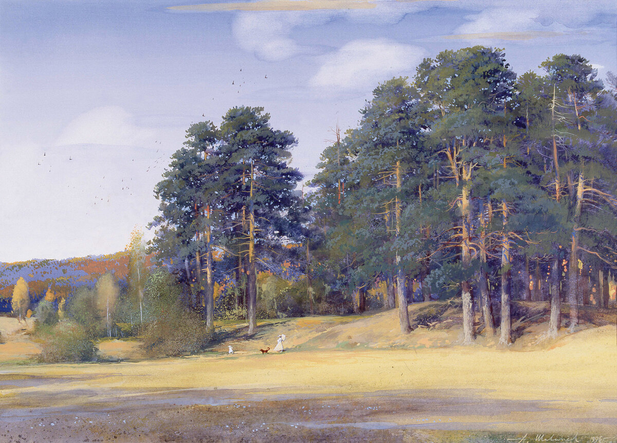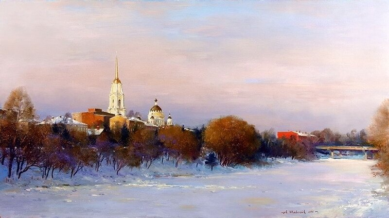 Художник обращается к лучшим традициям русской реалистической живописи в жанре пейзаж, городской пейзаж, натюрморт и исторический жанр.